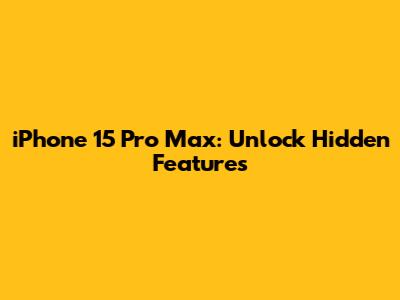 IPhone 15 Pro Max: Unlock Hidden Features
