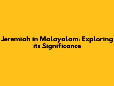 Jeremiah In Malayalam: Exploring Its Significance