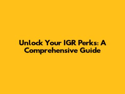 Unlock Your IGR Perks: A Comprehensive Guide