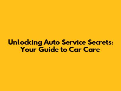 Unlocking Auto Service Secrets: Your Guide To Car Care