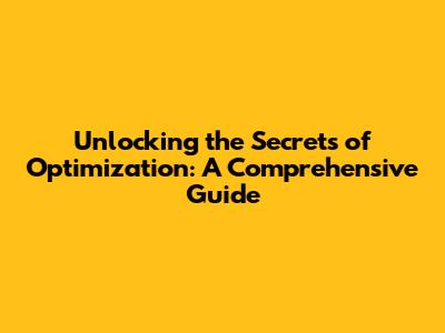 Unlocking The Secrets Of Optimization: A Comprehensive Guide