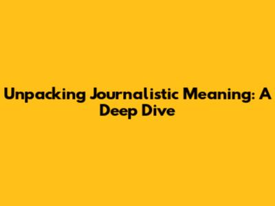 Unpacking Journalistic Meaning: A Deep Dive
