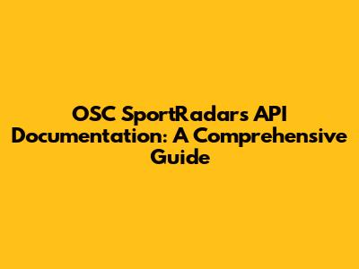 Unveiling OSC SportRadar's API: Your Ultimate Guide
